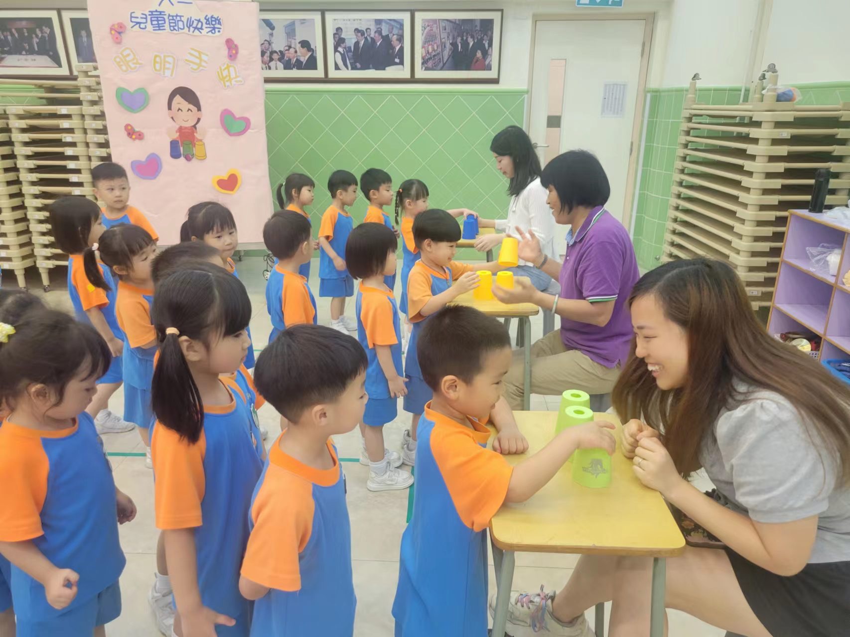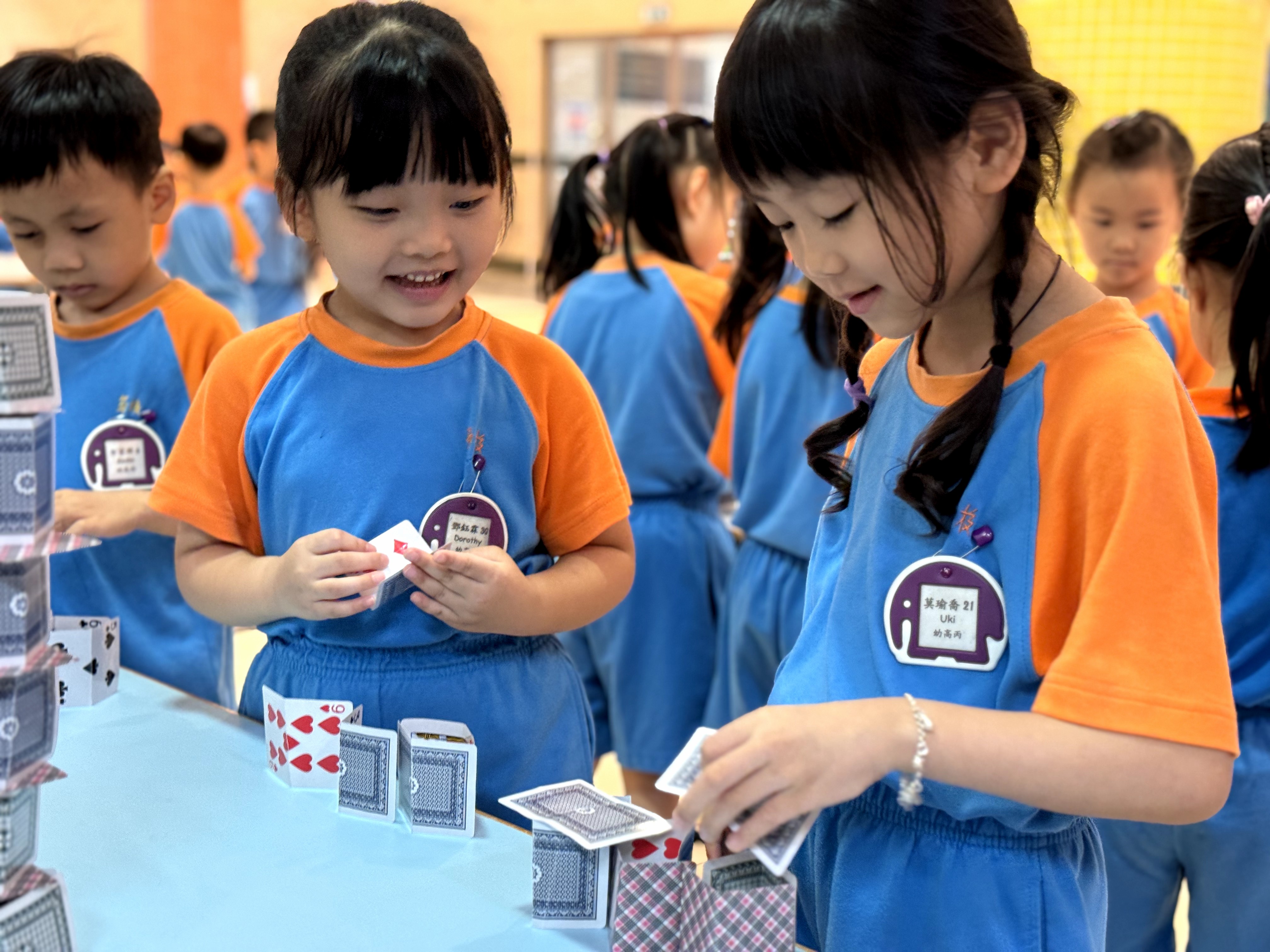 老師們以科學為主題創設一系列的攤位遊戲,包括「不倒翁」、「飛行器」、「好玩的杯子」、「拉炮」、「翻跟斗樂園」及「神奇的撲克牌」,透過具探索性及趣味性的科學遊戲,提升幼兒的思考能力及解決問題能力,希望藉此帶給幼兒輕鬆愉快的探索旅程,期盼所有幼兒都能在童年裡留下幸福快樂的回憶。