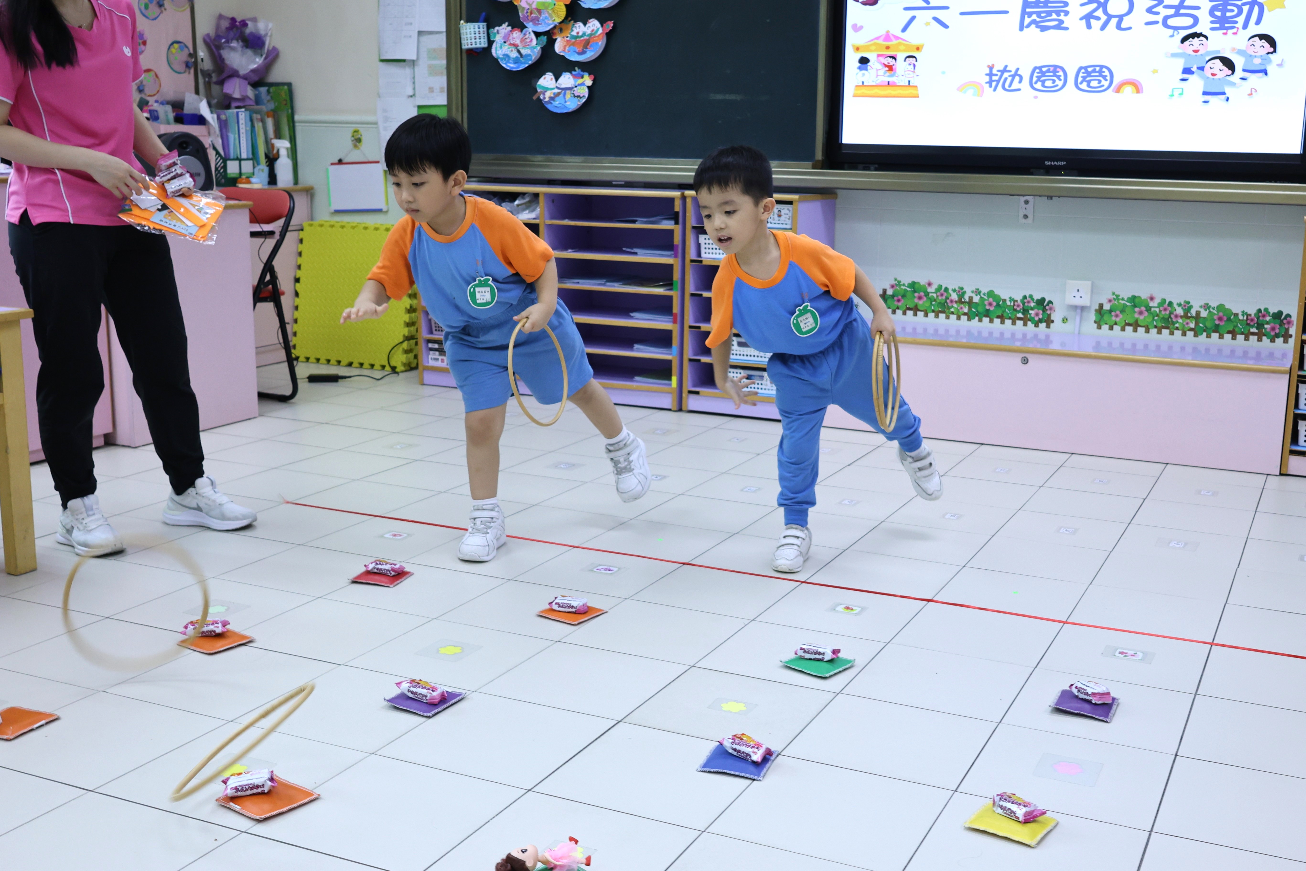 活動當天,全體幼兒精神抖擻地以活潑動感的律動操展開序幕,隨後在義工家長協助下有條不紊地開展多個攤位遊戲,孩子們積極踴躍地參與各種趣味盎然的遊戲,比如拋藤圈遊戲,他們全神貫注,努力將藤圈投擲在目標中;還有撈金魚的攤位也圍滿了小朋友,他們專注且手疾眼快地撈出色彩繽紛的小魚。每一位孩子的臉上都綻放著燦爛的笑容,他們在這裡度過了一個令人難忘且無比快樂的兒童節,這些精彩的活動花絮也將成為他們童年記憶中璀璨的一筆。