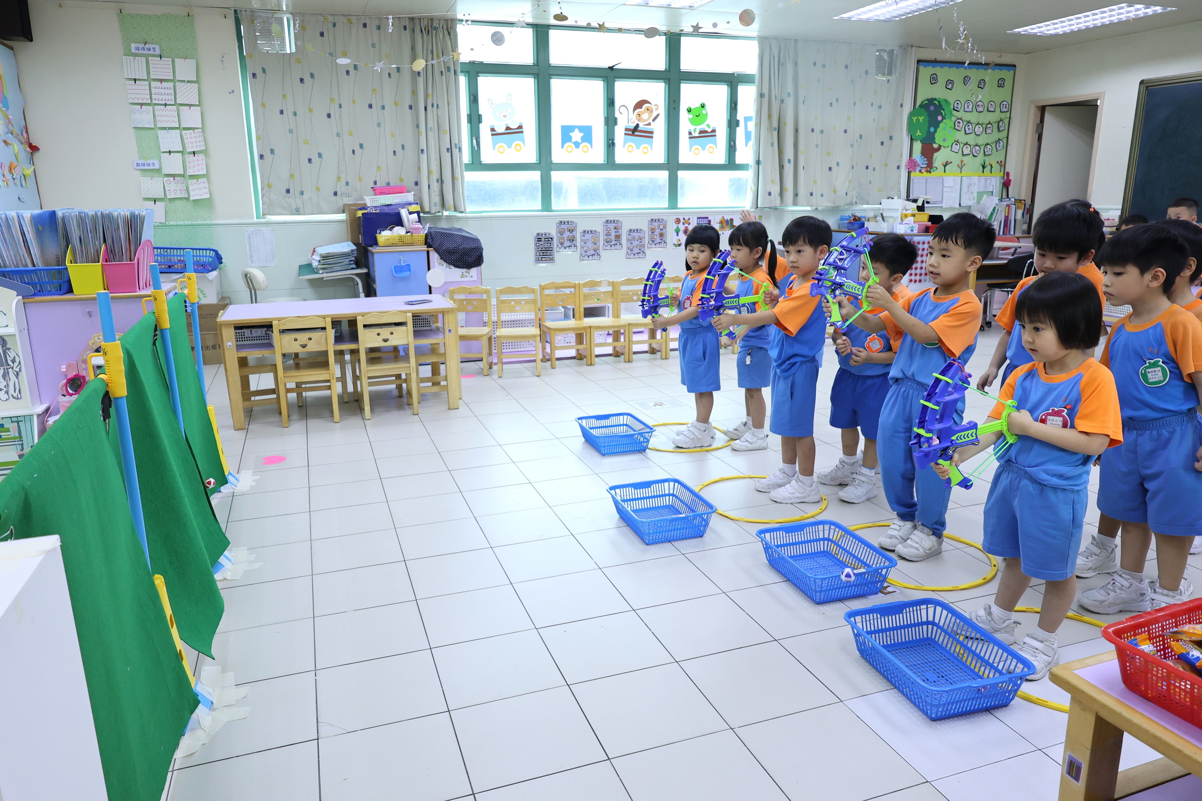 活動在活力四射的籃球操中拉開序幕。緊接著,餘暇班的幼兒帶來了精彩的舞蹈和故事表演。隨後,中班的各個教室變成了一個充滿樂趣的遊樂園。在這裡,幼兒們可以自由選擇參與各種有趣的遊戲活動,如挑戰手眼協調的彈彈球、鍛煉反應能力的彈彈槍、挑戰耐心與技巧的拋圈圈、體驗速度感的滑板車、激發空間想像力的拼圖樂,以及享受旋轉樂趣的小陀螺。每一個遊戲都經過精心設計,旨在讓幼兒在玩耍中學習,在學習中成長。