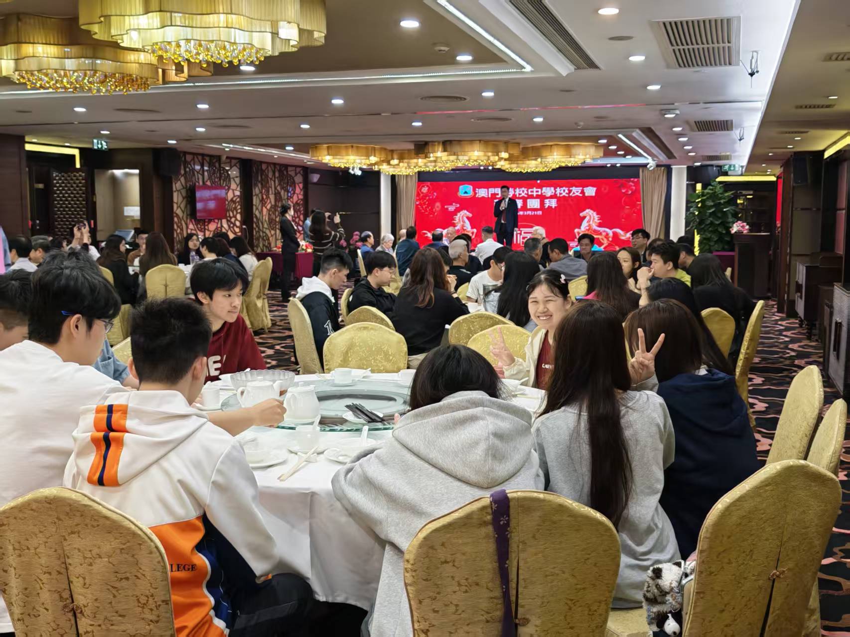 宴會筵開多席,校董陸波,校友會副會長周偉光、監事長陳自錦、顧問鄭國強,校務顧問萬群、副校長陳嘉敬,家長會會長鄭炳燦等出席。